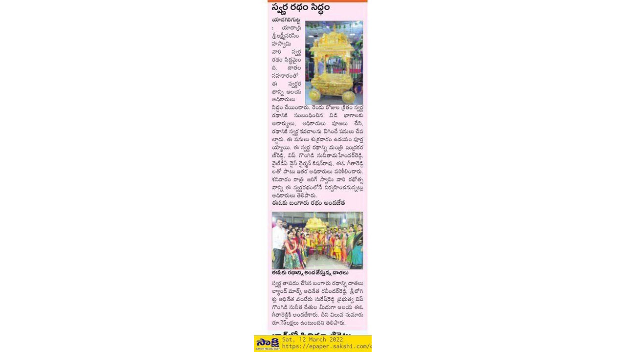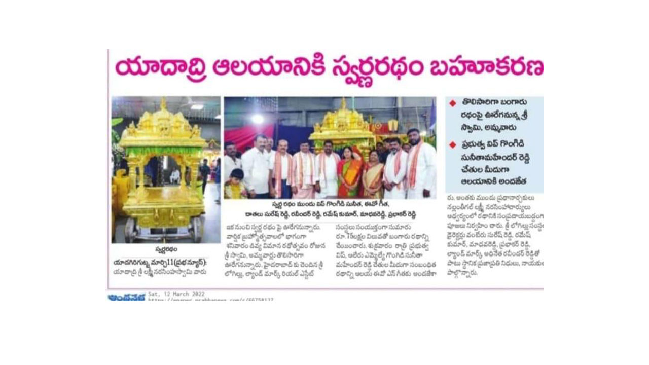 Landmark Group’s Glorious Offering: The Golden Chariot Blesses Yadadri Sri Lakshmi Narasimha Swamy.